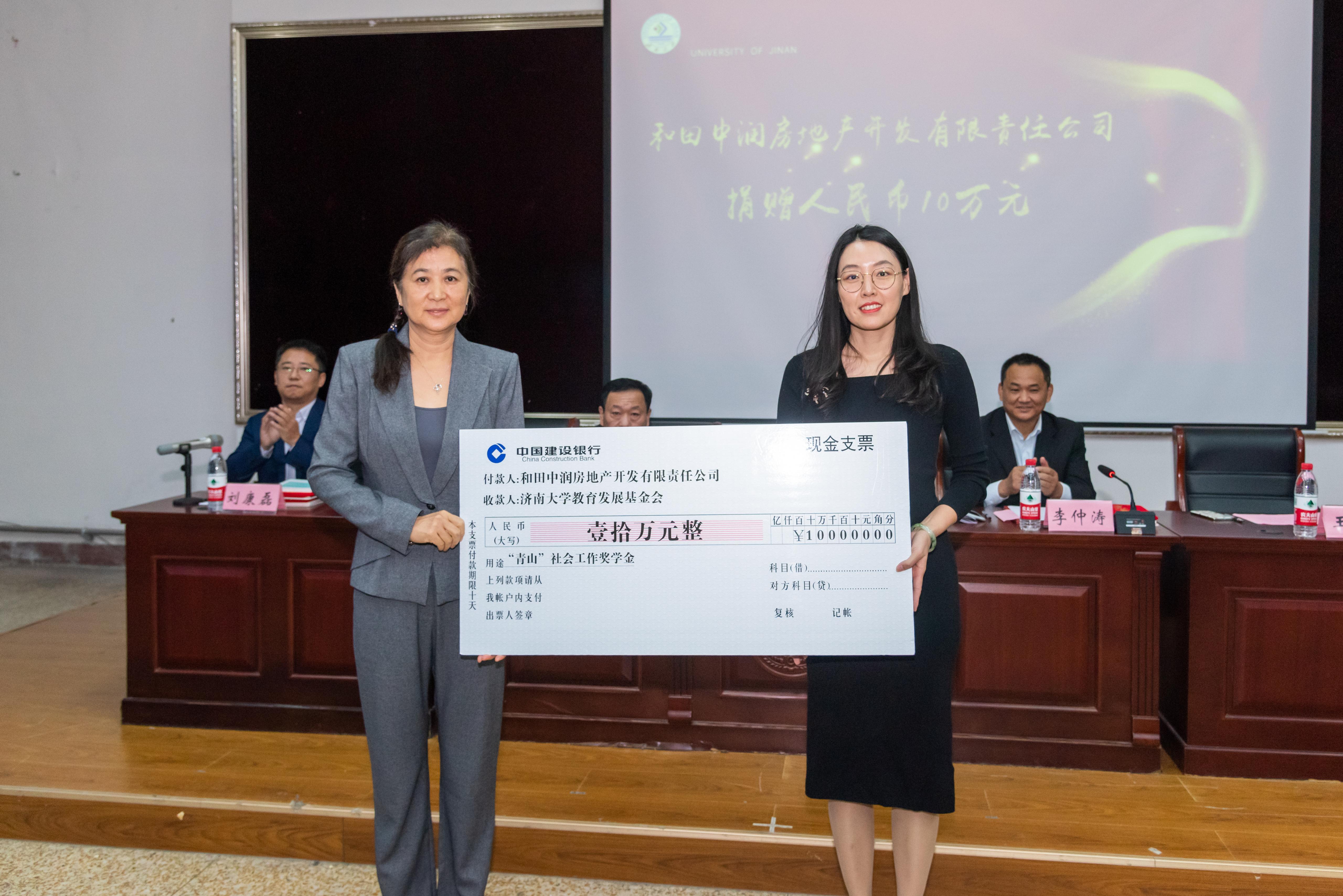 理事会会议结束后,第七届“青山”社会工作奖学金捐赠仪式暨颁奖典礼举行。活动上,和田中润房地产开发有限责任公司总经理、原济南民政学校校友宋怀明捐赠奖学金十万元,新2会员管理端官方网站正处级组织员国迎春代表学院接受捐赠。会前,凤凰网山东公司副总经理王玉华校友、东营市震东电子科技有限公司董事长牛保堂校友、济南强生出租车公司经理马英杰校友、北京顺和金成教育科技有限公司董事长韩金艳校友、保定市竞秀区商务局副局长王保瑛校友分别以不同形式向“青山”社会工作奖学金注资捐赠。济南大学“青山”社会工作奖学金理事会副理事长、学校合作发展处副处长李仲涛为捐赠校友代表王玉华和牛保堂颁发了捐赠证书。