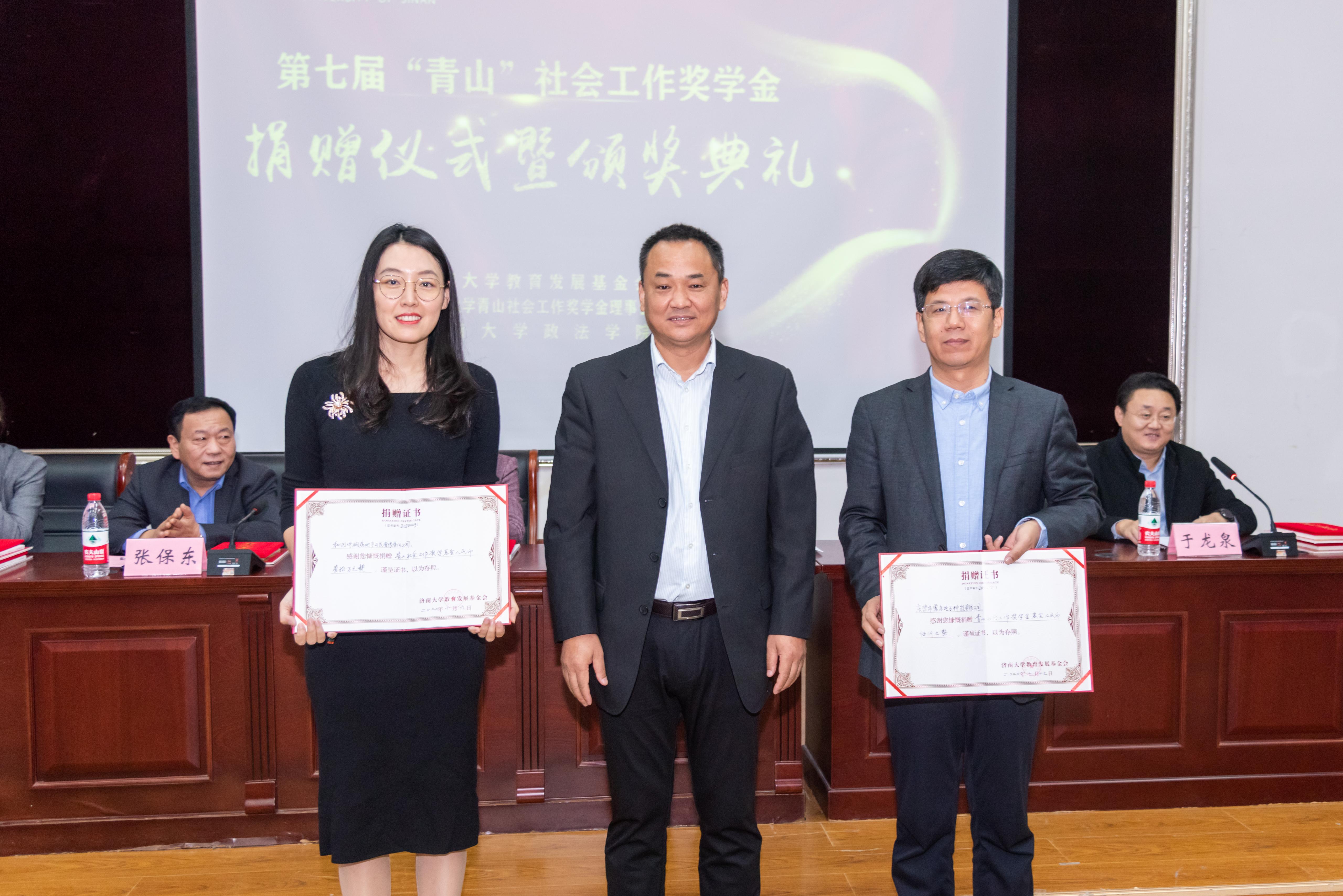 新2会员管理端官方网站副院长刘康磊宣读了济南大学第七届“青山”社会工作奖学金表彰决定,与会嘉宾为获得第七届“青山”社会工作奖学金的学生颁奖。