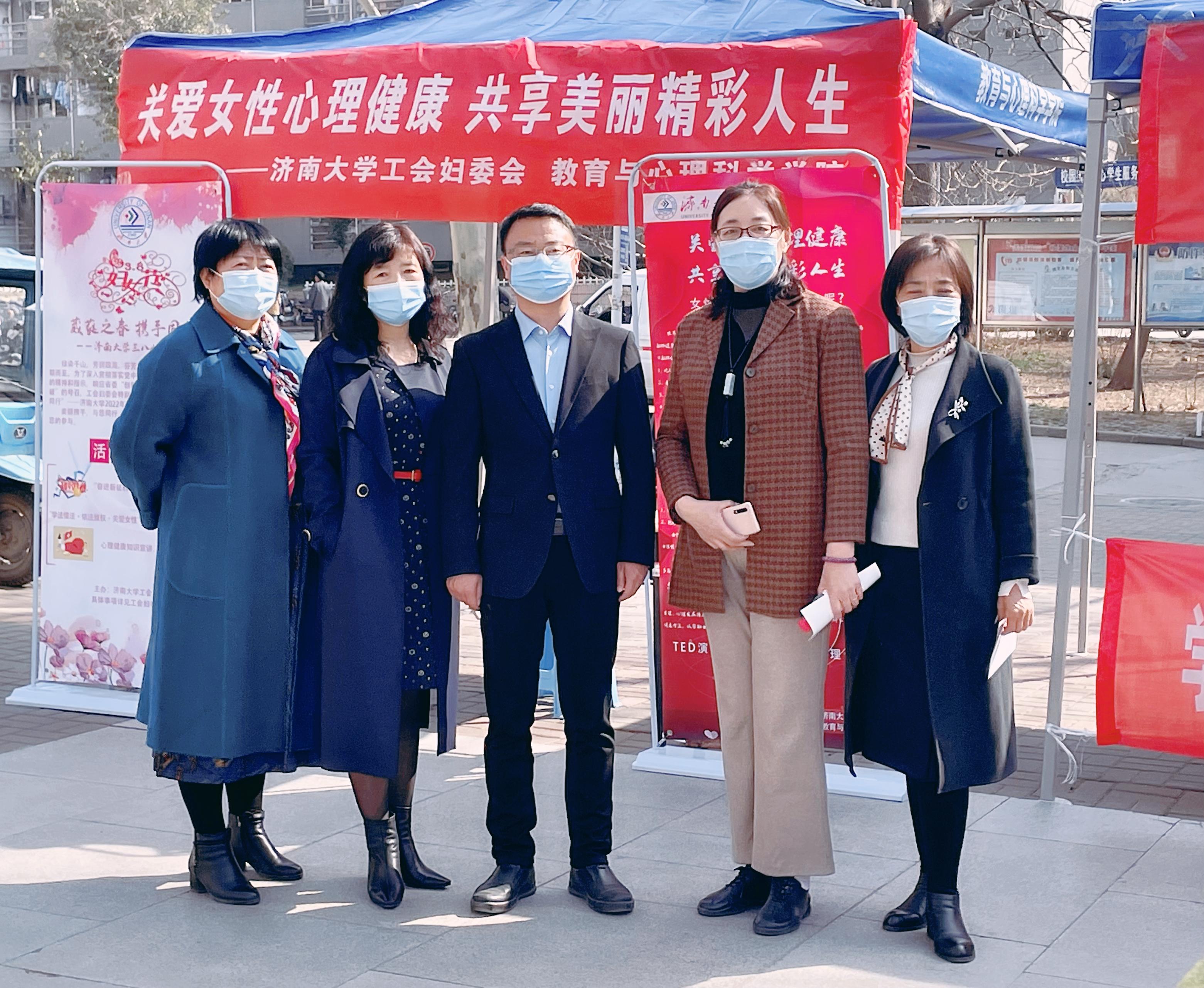 为深入贯彻落实党中央关于妇女事业和妇女工作的精神和指示,响应省委“创新引领走在前,聚立实现新突破”的号召,新2会员管理端官方网站、济南大学妇女维权服务站于3月8日在八食广场开展“葳蕤之春,携手同行”妇女节系列活动,新2会员管理端官方网站各位领导老师、工会妇委会各位领导以及部分学生到场参加。