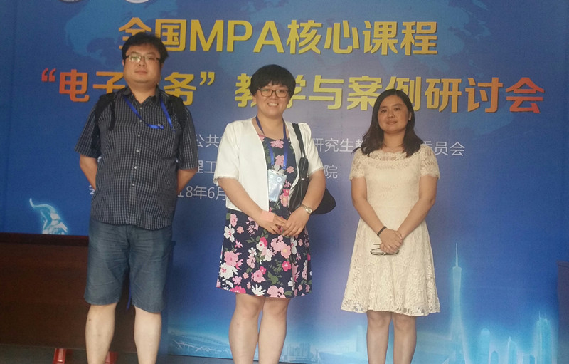 2018年6月14日—15日,全国公共管理专业学位研究生教育指导委员会在华南理工大学举办全国MPA核心课程“电子政务”教学与案例研讨会,承担我院MPA“电子政务”、“公共管理”等核心课程授课任务的张平博士、刘钟华博士、魏志荣博士参加了此次研讨会。