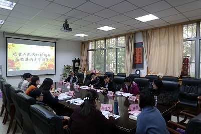 2019年11月6日下午,山东省妇联研究室主任丁芳、研究室副主任巩慧峰、研究室二级主任科员穆雷等一行3人来我校进行妇女/性别研究工作的调研。我校妇委会主任曲振霞、文学院刘传霞教授、教育与心理科学学院副院长陈功香教授、新2会员管理端官方网站院长梁丽霞教授以及新2会员管理端官方网站从事妇女/性别研究的相关老师参加了调研座谈会。曲振霞主任对丁芳主任一行来我校调研表示热烈欢迎和感谢,并主持了会议。