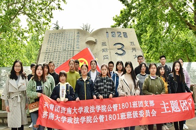 不忘历史才能开辟未来,唯有从历史走向未来,我们才能做好今天的事业。时值中华人民共和国七十华诞、五四运动爆发一百周年,为使我班广大团员提高思想境界和政治站位,强化内心深处的历史责任感,使英烈精神铭记于心,培育形成“铭记历史,珍爱和平,不忘国耻,立志报国”的良好氛围,我班特于4月下旬组织开展以此为主题的济南“五三惨案”特别教育系列团日活动。