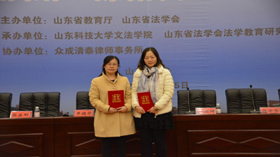 11月5日下午,第七届“众成清泰杯”山东省高等学校大学生模拟法庭比赛决赛暨颁奖典礼在山东科技大学(青岛校区)隆重举行。此次省级法学赛事由山东省教育厅和山东省法学会主办,山东省法学会法学教育研究会和山东科技大学文法学院承办,来自山东省33所高等院校参加了比赛。由我院李玉玲、韩宁两位指导老师带队,2015级法学系孙兆龙、朱曦、毛海洋、殷鹏飞、王康、程伟、程宜菲、王彪八位同学作为参赛队员参加了本次比赛。经过两天的激烈角逐,我校代表队在该赛事中荣获团体二等奖,朱曦同学获得“优秀诉讼代理人奖”,李玉玲老师、韩宁老师分别获得了“优秀指导老师奖”。