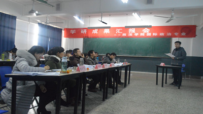 为鼓励同学们结合专业,阅读经典,进行深层次思考与交流,12月26日上午,我院2016级国际政治专业在4教504教室举办了第一期学研成果汇报活动。副院长钱继磊、国际政治系系主任李霞、专业老师李洪涛、刘雨辰、刘凤环,孙云飞及2016级国政专业全体同学参加汇报会。
