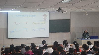 其次,朱梅莹讲师就政治学与行政学专业做了详细的介绍。其中重点介绍了本专业雄厚的师资力量、专业办学特色、开设课程和就业方向等,并以16级首届政行专业毕业生的就业状况给同学们作为参考;代洪亮副教授就思想政治教育专业做了详细的介绍。其中重点介绍了本专业专业办学特色、开设课程和就业方向等,在明确专业介绍基础上,代老师结合历届毕业生发展表示专业知识是发展一切的基础,脚踏实地,学好专业知识,是未来成功发展的关键。