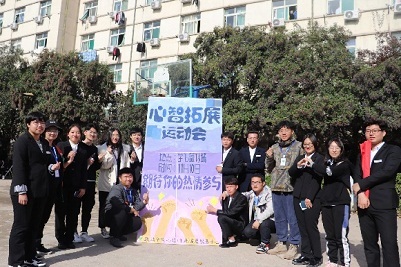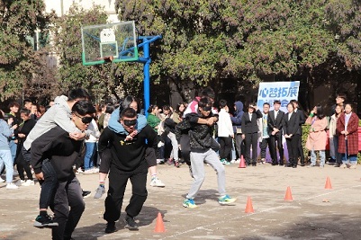 首先,由主持人宣布游戏规则及本次活动的注意事项,紧接着心理(生涯)发展服务中心剧社组同学表演了激情四射的开场舞。本次心智拓展运动会正式开始。各班级参赛代表队伍跃跃欲试。传声筒、指压板连连串、猪八戒背媳妇、指压板跳大绳、盲人摸象等多种益智游戏形式新颖,寓教于乐,不仅使同学们在游戏中收获了快乐,也发扬了同学们团结协作、分工合作的团队精神。