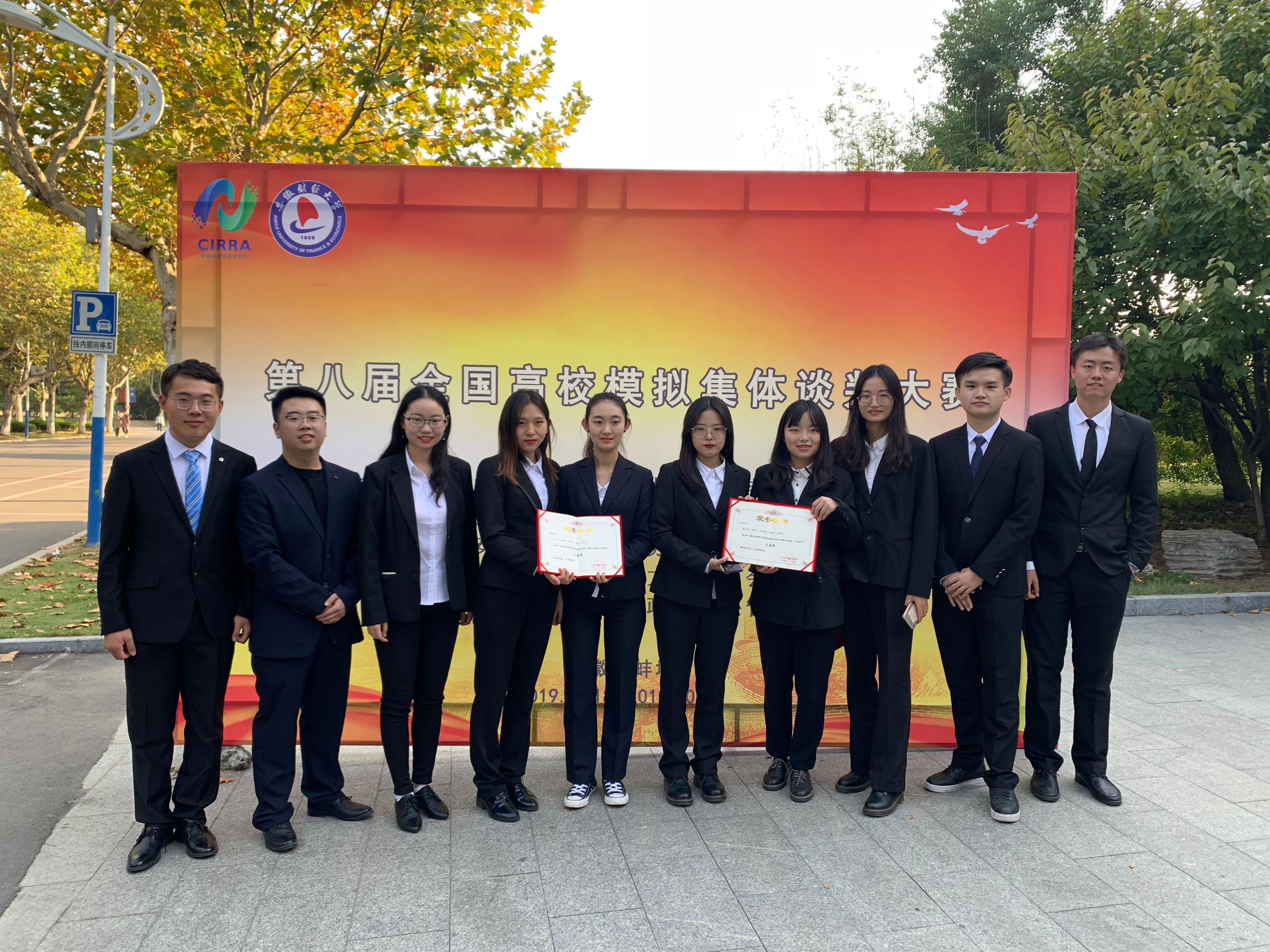 10月20日上午为决赛。我院劳方代表队对阵北京物质学院资方代表队、资方代表队对阵广西财经学院劳方代表队。经过19日晚的彻夜备战及经验教训总结,决赛中我院队员稳扎稳打、合作默契,表现出不凡风采。最终劳方和资方均荣获二等奖,劳方代表队荣获“最佳团队奖”(共有8支队伍获此奖项),王月暄、魏玉雪、齐新宇、李雨雪荣获“最佳谈判员”个人奖,张国栋和朱丽敏老师荣获“优秀指导教师一等奖”。