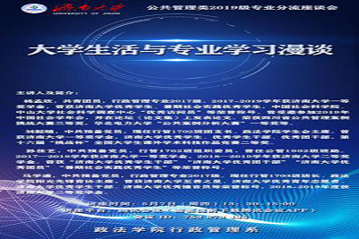 5月7日中午1:30,第一场“大学生活与专业学习漫谈”分享会如期进行。主讲嘉宾为行管17级杨孟欣、刘懿晴、孙佳艺、马学通四位同学。