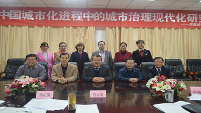 城市治理现代化课题的六位子课题负责人依次向在场的领导汇报研究情况。高海虹博士介绍了城市管理理念的研究情况,提出了六位一体的观点,指出应在国家政策大背景下转变思想,创新观念,提升治理现代化水平。魏志荣博士针对城市治理体系做了相关汇报,指出可以从法理依据、方向指引、运行规划三方面推动城市治理体系的形成。张平博士从人的素质方面提出应该了以人为本,提升城管队伍与百姓自身素质,进而推动城市文明品味。周晨虹教授汇报了城市治理法治化的研究情况,提出应加强创新实践,明确城管职能,促进各地区的协同合作,进而推进城市治理法治化进程。胡艳蕾博士本着向人民提供更多的优秀产品的原则,从原因、过往经验、意义等方面做了详细介绍。邹艳晖副教授通过列举北京、成都、长春等九个先进城市第三方监管的具体情况,结合自己的亲身经历,对城市化治理中第三方监管的可行性和合法性做了详细阐述,强调城管应做到安全防护与文明施工。汇报完毕,济南市城管局领导与各位课题负责人进行了深入的探讨。