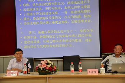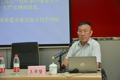 应我校新2会员管理端官方网站邀请,6月13日上午,兰州大学历史文化学院教授、博士生导师王希隆来我校作题为《“一带一路”建设倡议提出的历史依据与前景展望》的学术报告,我院师生代表聆听了报告,报告会由我院副院长李慧明主持。