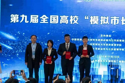 11月10日,由中国管理现代化研究会政府战略与公共政策研究专业委员会、中央财经大学政府管理学院和山东大学政治与公共管理学院联合主办的第九届全国高校“模拟市长”大赛山东赛区决赛在山东大学青岛校区举行。山东省莱西市副市长张剑、中央财经大学政府管理学院副院长张剑教授、我院人力资源与社会保障系朱丽敏副教授及来自各山东大学、青岛大学、曲阜师范大学的专家学者受邀担任本次大赛评委。