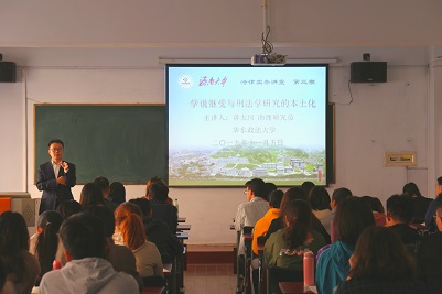 11月5日下午两点,我院优秀校友,华东政法大学助理研究员蒋太珂博士应邀在我校四教413作题为“学说继受与刑法学研究本土化”的学术报告,2019级法律硕士及各年级本科生50余名同学参加本次活动。