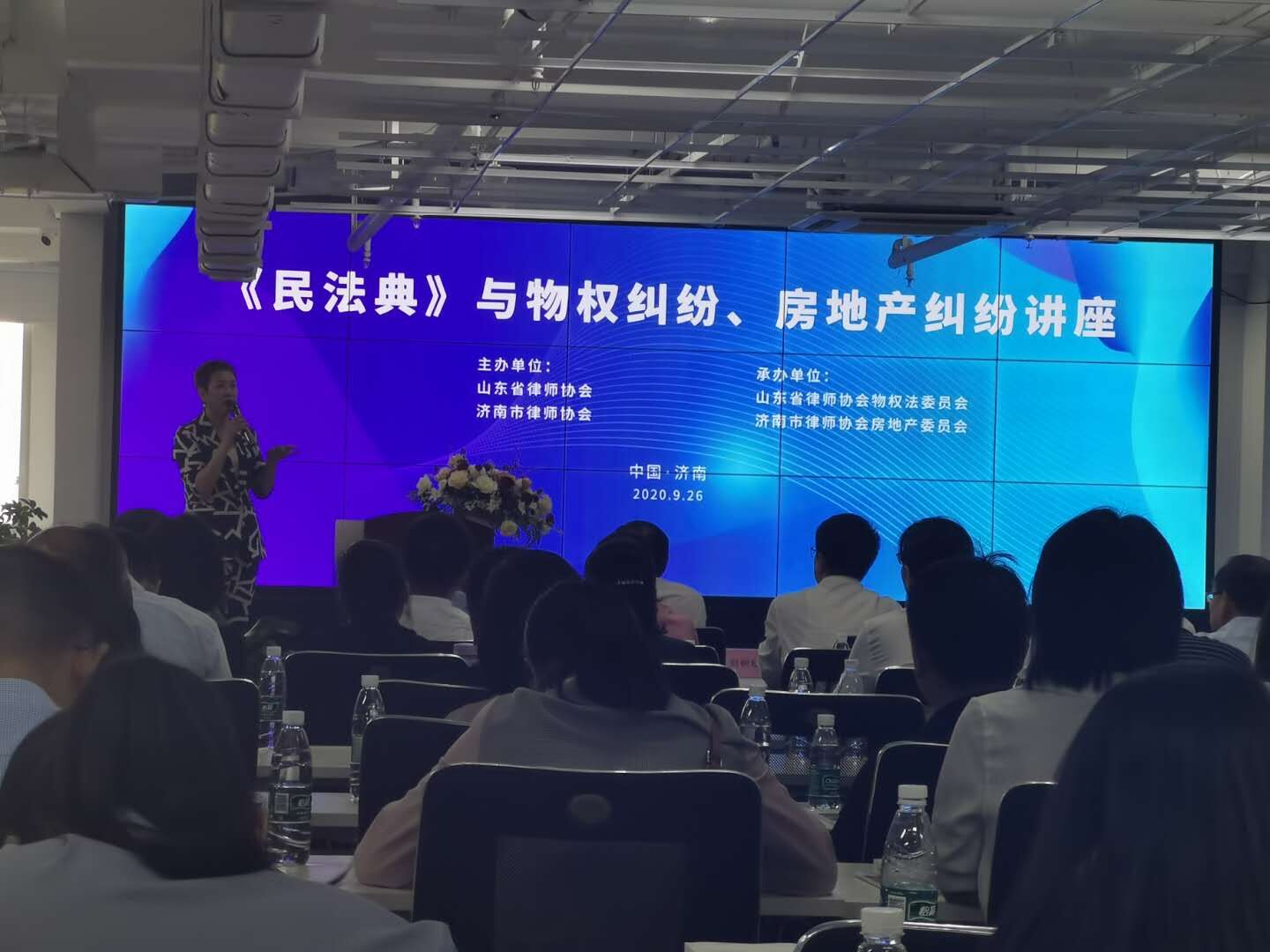 9月26日,学院组织2020级全体法律硕士参加由山东省律师协会和济南市律师协主办、山东豪才律师事务所承办的《民法典》与物权纠纷、房地产纠纷讲座。