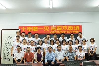 为了感谢学校、学院四年对同学们的教育与栽培,2004级法学2班的校友向学院赠送了“宪章飞霜简,社稷理彝伦”的书法牌匾,表达了对母校、老师的感恩和祝福。会后,校友们集体与老师合影留念,并邀请了各位领导和老师参加聚会晚宴。晚宴席间,丛晓峰部长和徐庆国书记发表了热情洋溢的讲话,对同学们回到母校表示了欢迎、对同学们的工作和生活进行了富有哲理的指导和建议。校友们纷纷表示决不辜负老师们的期望,奋力拼搏,为美好的未来而努力奋斗;也将会持续关注母校的事业发展,积极为学校的发展贡献自己的微薄之力。