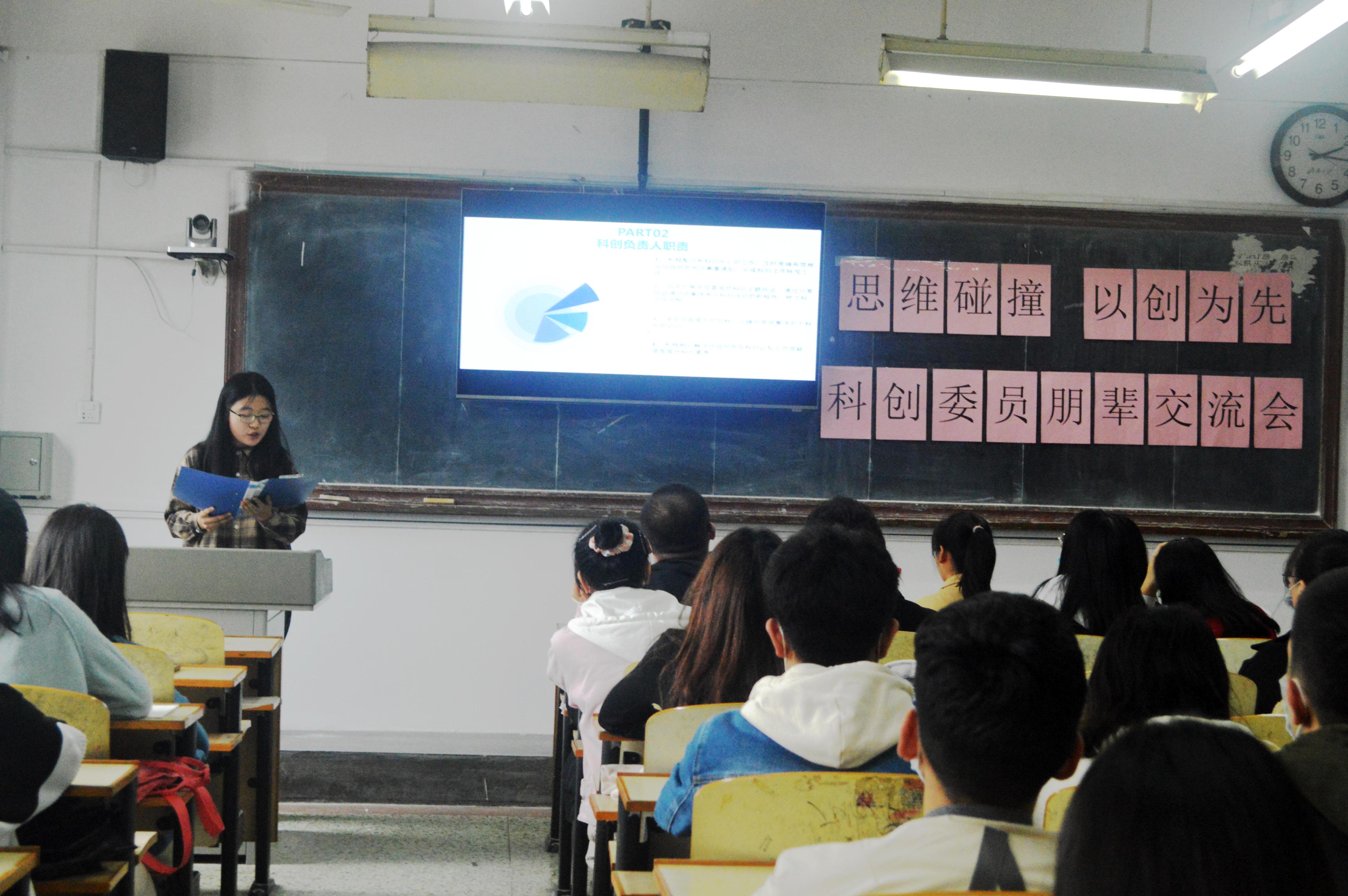 思维碰撞,以创为先——为明确同学们对于科创工作的认识,增强班级科创负责人对各类科创赛事的了解。11月17日,由我院学生会承办的“思维碰撞,以创为先”主题科创委员朋辈交流会在第四教学楼成功举办。
