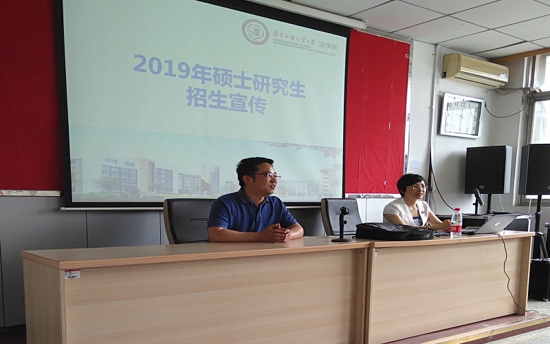 5月15日,广东外语外贸大学法学院教授、副院长,法学博士王荣珍老师来我院进行本校“法学和法律硕士生招收与培养”的招生宣讲会,法学系同学积极参与了本次宣讲活动。