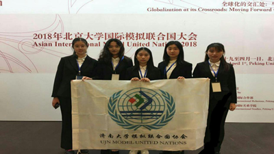 应北京大学国际模拟联合国大会的邀请,3月28日--4月1日我院国际政治专业1601班王颖颖、潘晓华两位同学和济南大学模联协会其他三位成员前往参加2018年模联大会,这是我院学子首次参加国内高水平模联会议。来自北京大学、香港中文大学(深圳)、上海交通大学、中山大学、浙江大学、吉林大学、哈工大、天津大学、国际关系学院、北京语言大学、北京师范大学、对外经贸大学、外交学院、中国传媒大学、国防科技大学、空军医科大学、东北师大等全国各地高校的学子共计七百余人参加了本次会议。