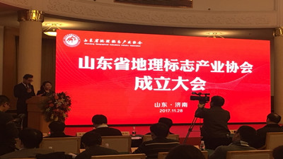 烟台苹果、莱阳梨、章丘大葱、龙山黑陶、长清茶、东阿阿胶、平阴玫瑰、沾化冬枣、微山湖四孔鲤鱼、肥城桃、日照绿茶等地理标志商标注册人及相关企业代表近400人参加了协会成立大会。