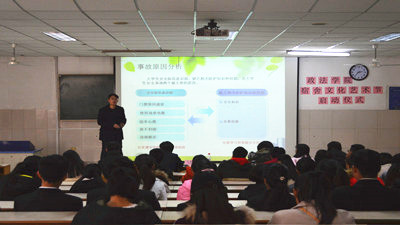 仪式上,马思源老师进行了大学生宿舍安全宣讲,开展了安全知识讲座。列举了大学生因安全事故伤亡事件,展开事故原因分析,号召同学们要牢固树立起“安全第一”的思想,全面加强校园安全管理工作,切实维护师生的人身财产安全和校园的和诣稳定。强调了要通过人防、物防、技防、协防这些方面构建“四位一体”的安全机制。呼吁同学们增强防盗、防火意识,树立防骗意识,注意交通安全,防止意外伤害事故,不要轻信网络,提高心理调节能力。